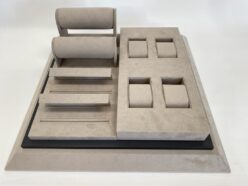時計やジュエリーといった商品は小さく精巧であるため、ディスプレイも小型で美しい仕上りが求められます。私たちは「どこよりも丁寧で綺麗な仕事をする」を社訓に、形状へのこだわりから素材選び、張る技術といった、ディスプレイ特有の技術と経験を積み重ねてまいりました。